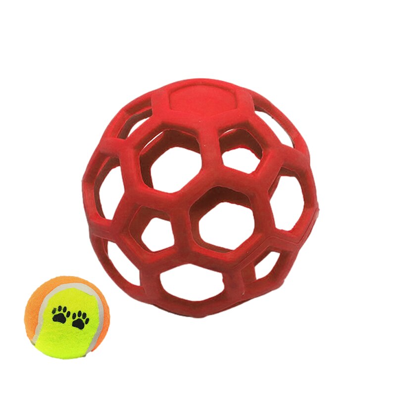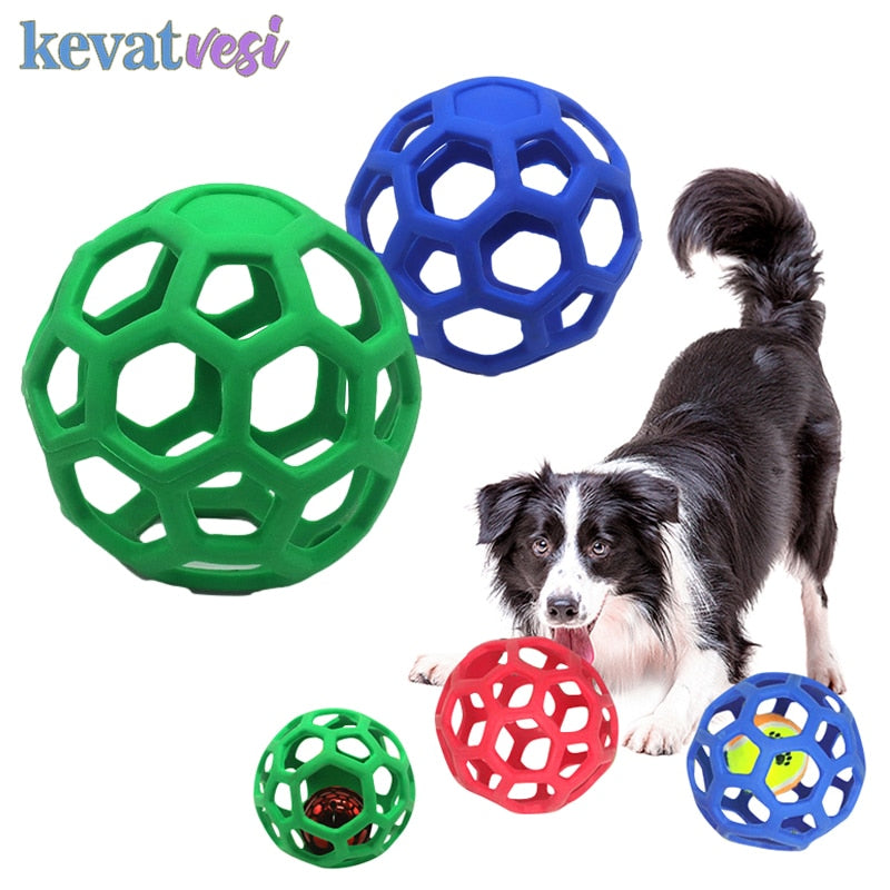 Pet Dog Toy Rubber Interactive Dog Toys Ball for Dogs Chew Toy Hollow Ball Bell Puppy Outdoor Training Game Playing Supplies