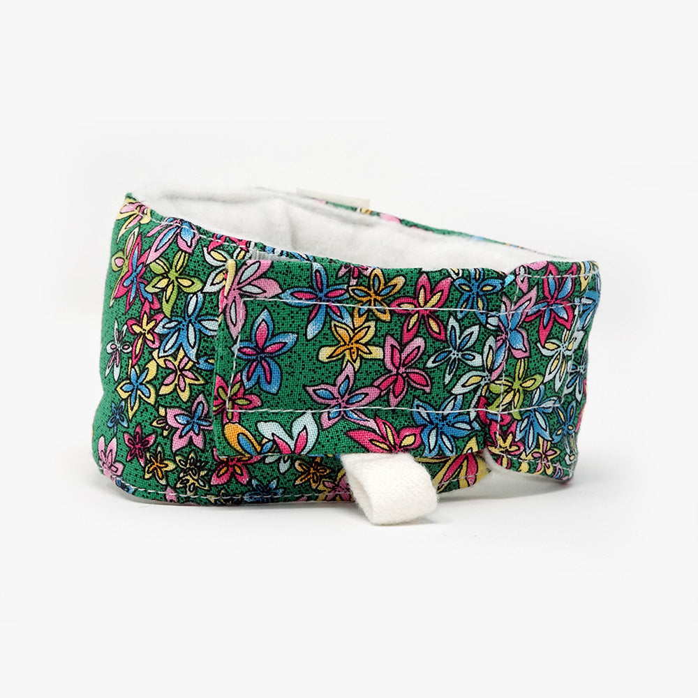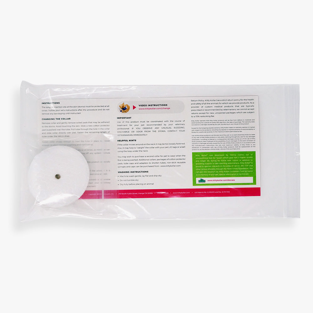 Kitty Kollar® is a washable, fabric collar designed to wear in conjunction with an esophageal feeding tube. The kollar replaces the gauze and bandaging normally used to hold the tube in place, keeping it more sanitary, more stable (less likely to be removed), more protected against scratching and damage, and more comfortable.